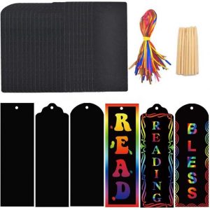 30pcs Scratch Art Bookmarks for Kids, 3 Style Magic Rainbow DIY Bookmarks Art & Craft Paper Bookmark Gift Tags Party Favor Pack Activity Bulk Making Kit for Boys Girls Birthday Game Easter Gift