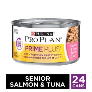 (24 Pack) Purina Pro Plan Senior Wet Cat Food Pate, Prime Plus SENIOR 7+ Salmon & Tuna Entree, 3 oz. Pull-Top Cans
