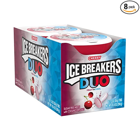 A blast of fruity cherry-flavored deliciousness with cooling crystals in one tiny mint? It’s like your favorite things have finally found each other. ICE BREAKERS DUO cherry-flavored mints are ready to be your go-to when you want to invigorate your taste buds and freshen up your breath. After breakfast, lunch or your morning or midday coffee, pop one of these treats into your mouth for immediate coolness and a refreshing cherry flavor. These combination mints are great snacks for moments when you need a quick treat in the middle of the day. Keep them on you no matter the occasion so you can show up calm, cool and collected with fresh breath on your side. These sugar-free ICE BREAKERS mints come in perfectly sized hand-held tins that slip easily into small spaces for everywhere access. You can open the case from two different sides — the “one” side for when you need a single mint, or the “many” side to access a handful and share with those around you. Whatever the day brings, you’ll be glad you showed up with ICE BREAKERS DUO fruit and cool cherry-flavored mints.