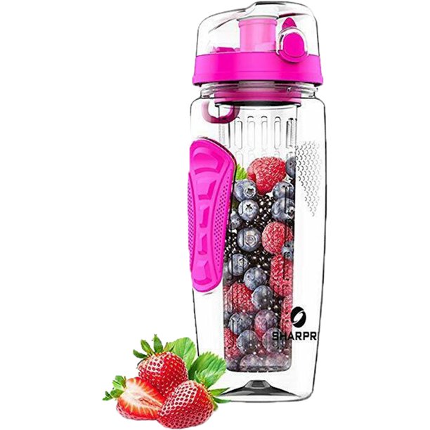 Sharpro 32 Ounce Fruit Infuser Non-Slip Flip Top Lid Water Bottle BPA Free Pink